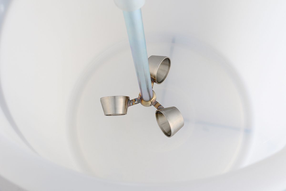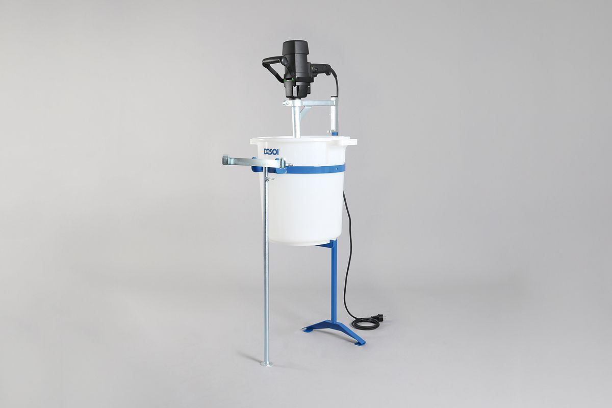 The add-on mixer with tilt mechanism DESOI Power-Mix-ABR 180 has been optimised for the perfect mixing of mineral materials with grain sizes 0 - 4 mm. The special design of each single cup ensures a gentle and homogeneous mixing of the material without air intake all over the mixing container. Using the mixer holder, the mixing device works automatically while the injection work is carried out (1-person-operation). The tilt mechanism allows an ergonomic decanting of the fresh material from the mixing container into the material container of the screw pump SP20.