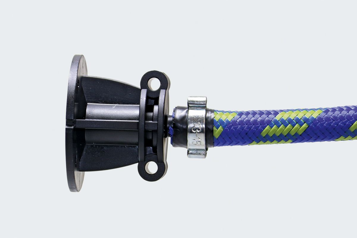 black, internal thread M8, insertion sleeves for nail packer holder, red protective plug for venting side, HP round head nipple M8 (separately enclosed)